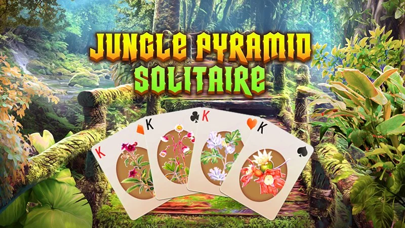 A Pyramid Solitaire in the Jungle. Remove all cards by selecting 2 free cards that have a total value of 13 (K=13, Q=12, J=11, A=1).